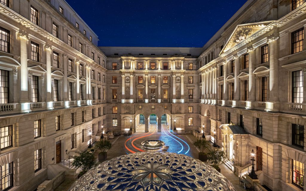 Once the workplace of Winston Churchill, T. E. Lawrence, and generations of British statesmen, The Old War Office was originally completed in 1906, with Baroque Revival features and grand internal courtyards. After a meticulous multi-year restoration, the building reopened in October 2023 as Raffles London at The OWO, bringing together historic architecture, contemporary British design, and a deep respect for storytelling. Today, the property includes the Raffles flagship hotel, private residences, and destination restaurants, forming its own luxury ecosystem in the heart of Whitehall.