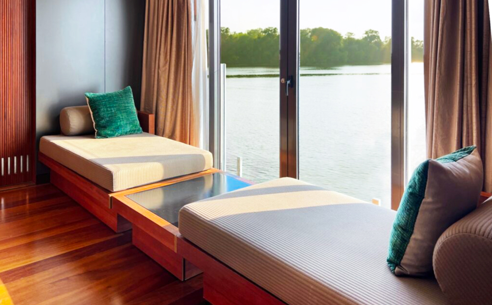Located on both the First and Second decks, these suites include a private outdoor balcony with a daybed, offering a personal front-row seat to life along the Mekong. From misty mornings to golden sunsets, the balcony becomes a natural extension of the suite — ideal for quiet reflection as the river flows past.