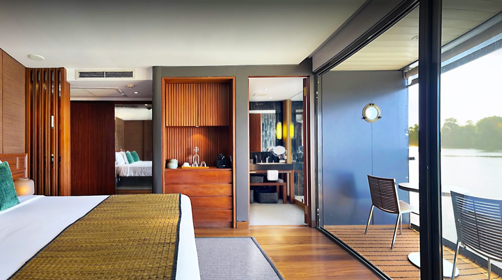 Equally refined and spacious, these suites feature expansive panoramic windows and an interior daybed that invites guests to relax while remaining fully immersed in the passing scenery. Natural light fills the space throughout the day, ensuring the river remains the focal point even without an exterior terrace