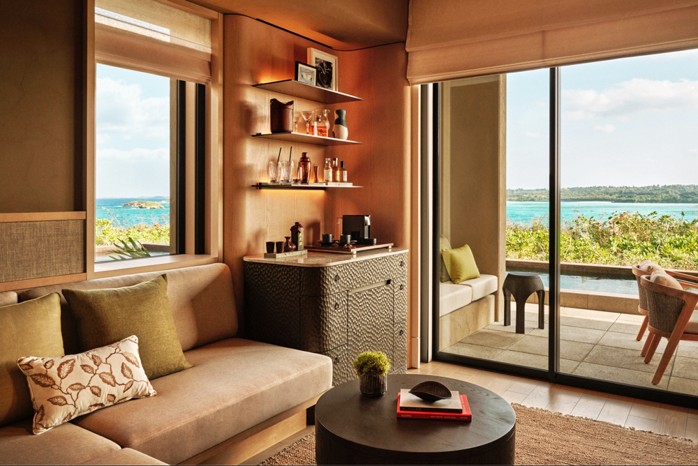 Rosewood Miyakojima is composed entirely of villas, a deliberate decision that defines the entire experience. With no traditional hotel rooms, every guest arrives into a sense of space, privacy, and calm from the very first moment. Each villa is oriented toward the sea, with architecture that opens outward — wide terraces, floor-to-ceiling glass, private plunge pools, and outdoor soaking tubs that invite the island inside. The design allows light, breeze, and horizon to shape the day naturally.