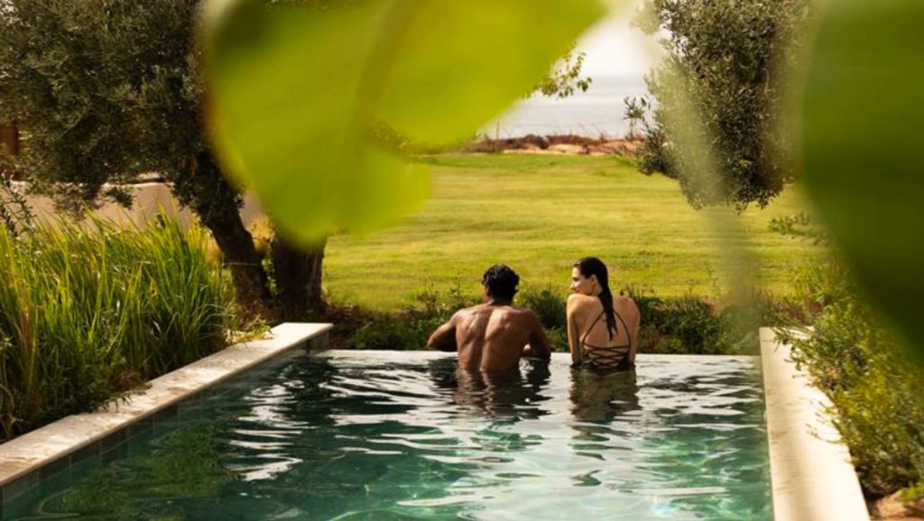 Water completes the wellness journey. Multiple pools are positioned to mirror the horizon, offering sweeping views across the sea and surrounding hills. Whether swimming in the early morning light or drifting through the warmth of the afternoon, the pools feel contemplative rather than performative—spaces for stillness, reflection, and unhurried time.
