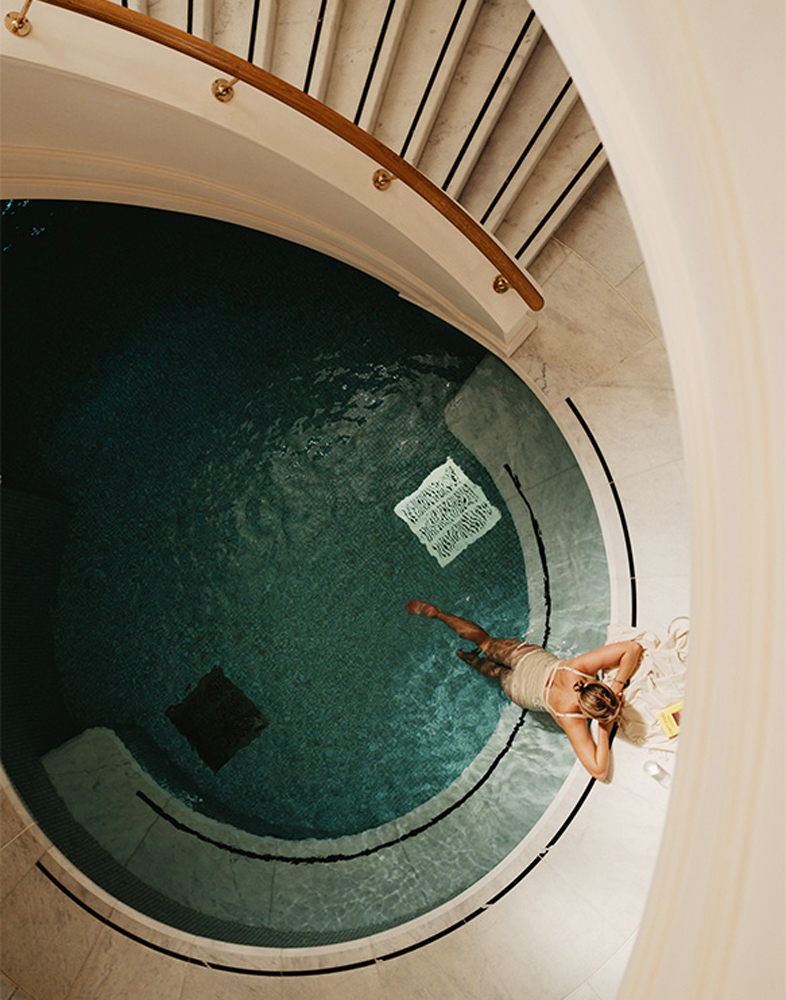 Expect a series of stone-lined pools, steam rooms, saunas, and cold plunges, each designed to engage the senses differently. The experience unfolds slowly — there is no rush, no prescribed route — only an invitation to listen to your body and linger where it feels right.