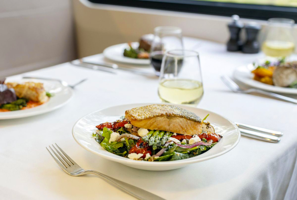 Meals onboard are thoughtfully prepared and timed to coincide with scenic highlights. Menus draw inspiration from Western Canada, often featuring locally sourced ingredients, seasonal flavors, and refined comfort dishes. Wine, cocktails, and non-alcoholic beverages flow freely, turning each meal into a celebratory pause in the journey.