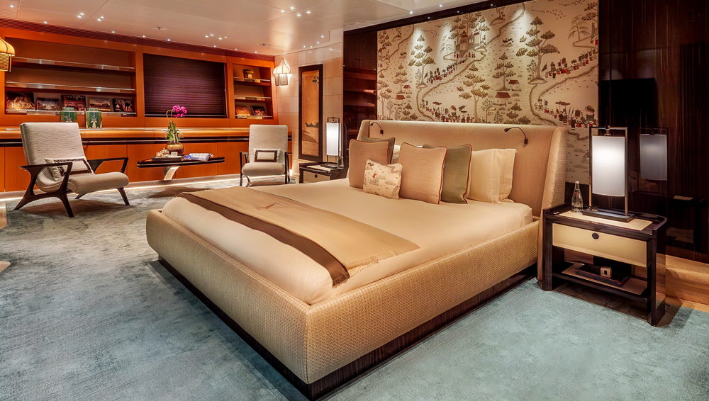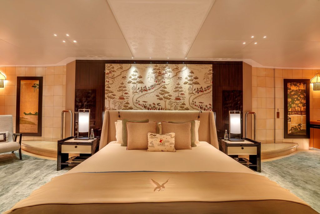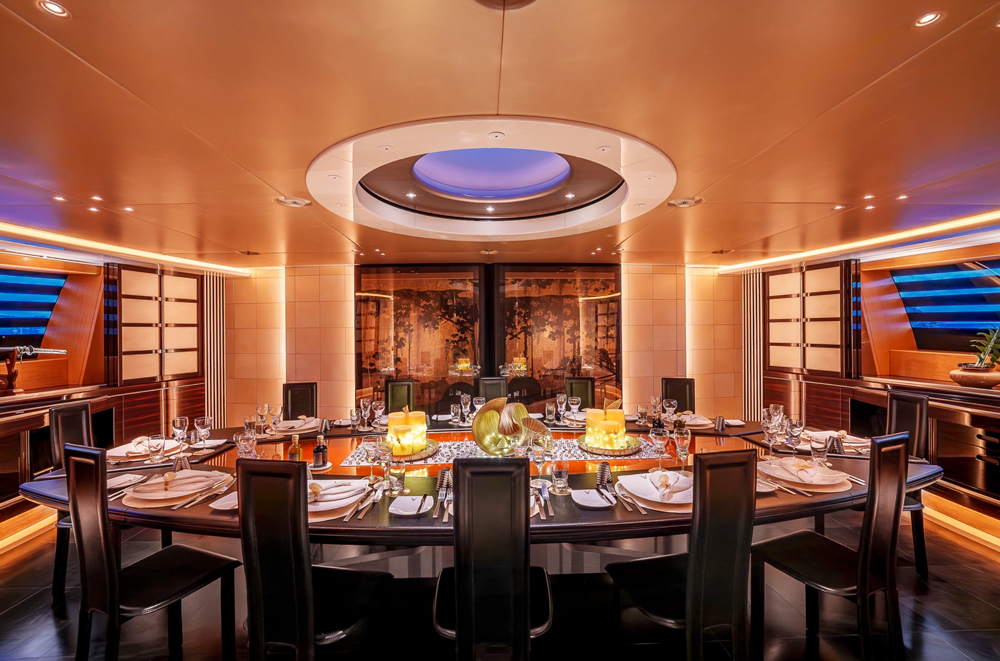 Accommodation is intentionally limited to maintain a sense of private residence rather than floating hotel. Up to 12 guests are welcomed across six suites, including a full-beam master suite and a VIP suite, each offering generous proportions, en-suite bathrooms, and quiet separation from shared spaces. The atmosphere throughout is refined and restrained, designed for long, comfortable stays.