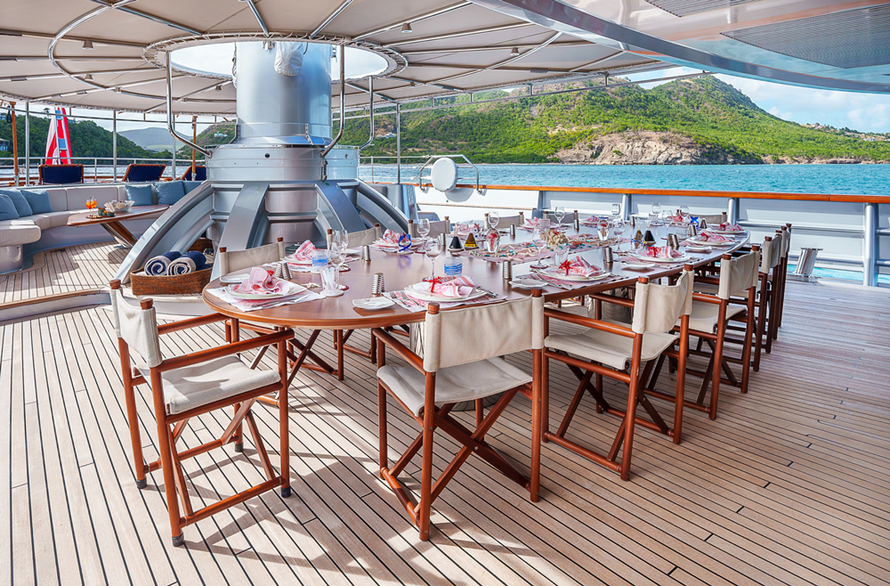 Dining aboard the Maltese Falcon is fully bespoke and entirely schedule-free. Menus are tailored to guest preferences and the regions being sailed, with an emphasis on fresh ingredients and unfussy elegance. Breakfasts stretch into late mornings under sail, lunches unfold between swims and shore visits, and evenings are reserved for candlelit dinners on deck or intimate indoor settings when the wind turns cool.
