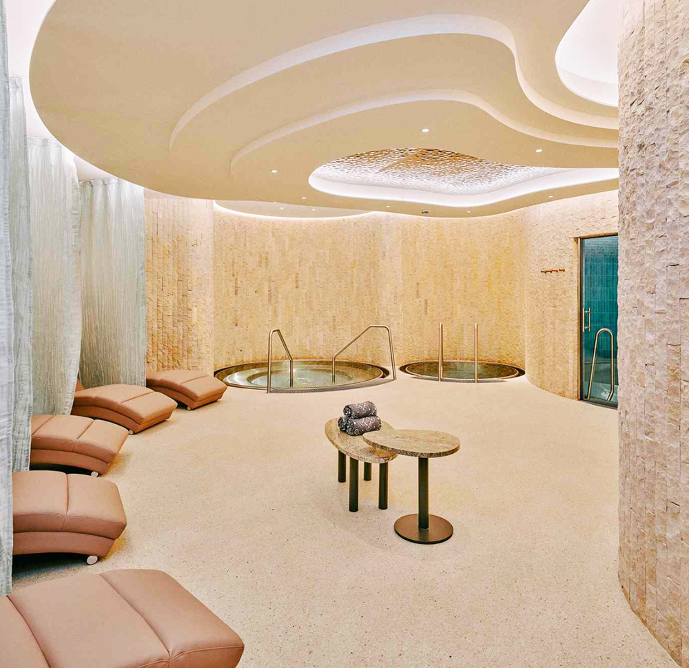 The architecture avoids ornamentation. Instead, scale, proportion, and light create serenity. Loungers are spaced generously. Ceilings rise high enough to allow breath to settle. Silence is protected.