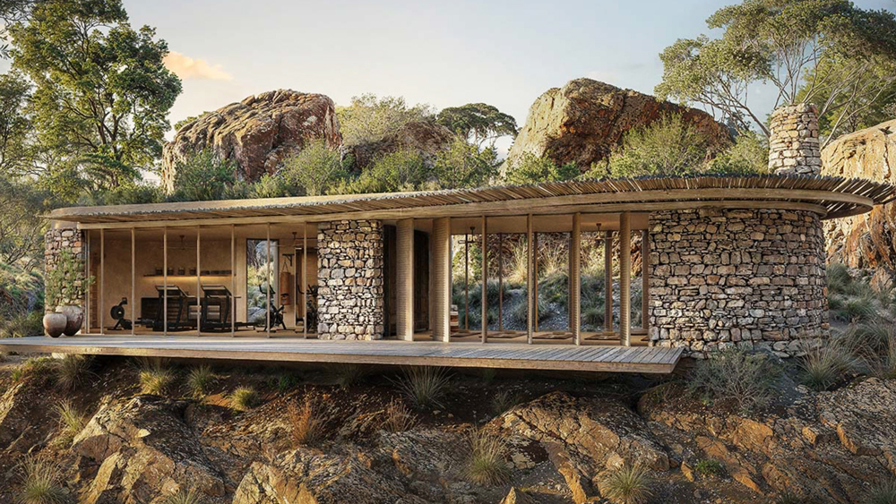 The architecture subtly echoes the granite outcrops scattered across the conservancy, allowing the lodge to blend seamlessly into the terrain.